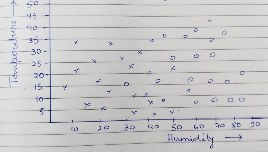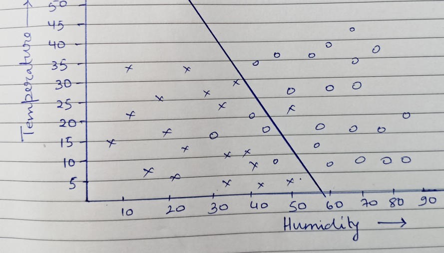 So, the next time you get a new set of data points (temperature and humidity), you just need to check on which side of the line they would lie.